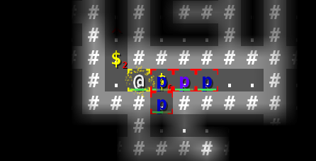 We're going to run into a lot of rogues here, and some minotaurs. Neither one is a serious threat, primarily because it's almost impossible to get surrounded in the Maze (most of the time, only two monsters can be adjacent to you). The rogues can pour out some poison damage, and the minotaurs can confuse. We'll have to be a little bit cautious, but we're certainly strong enough for this.