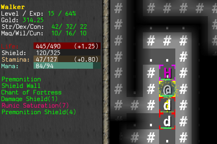 On level 3, we find a brawler's shielding rune (absorb 325 for 4 turns). Wow... now that one is really good. We're quite glad we didn't use the first one! We decide this rune is so good that we replace the teleport rune with it. This will remove our emergency escape option (for the time being), but it gives us tremendous survival capability to match.
