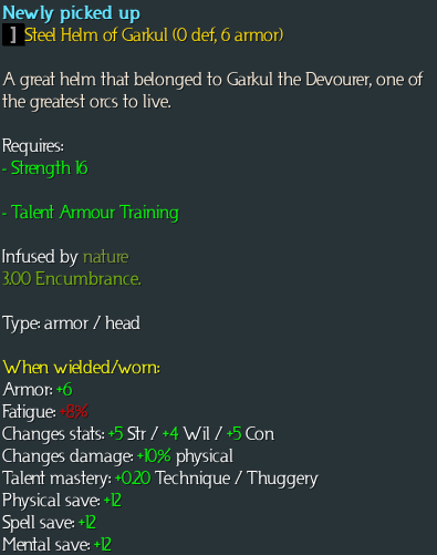 We wear that, replacing the champion's leather cap. There are trade-offs, but Garkul's helm is better overall.