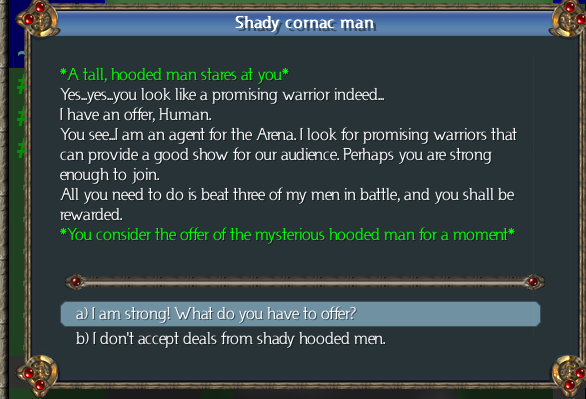 We accept the quest, and enter the Arena.