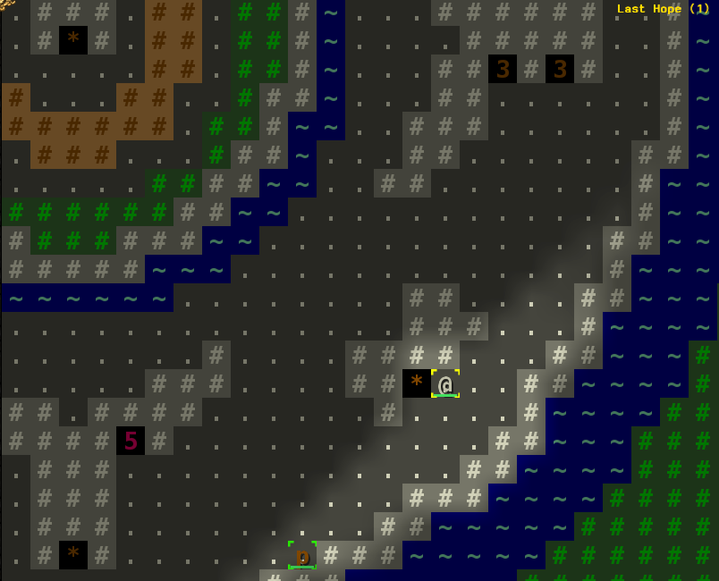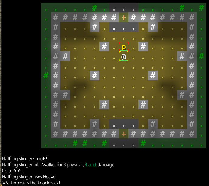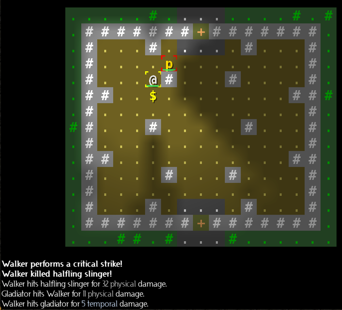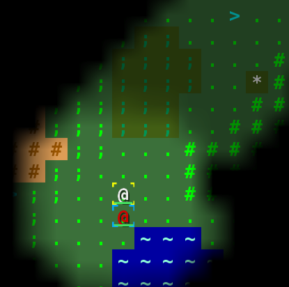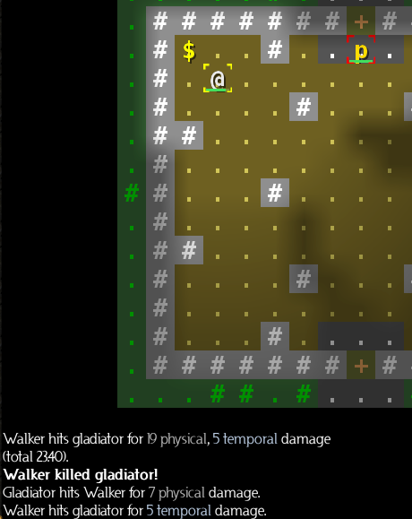 Something happened here -- we both slid southwest. But we can't tell from the few lines of text on the screen, because whatever it was, it scrolled up already. We'll need to check the game log (press Ctrl-M).