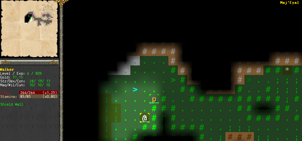 Now we have to decide where to go. We have several choices. We've only done one of the first tier dungeons -- the Trollmire, Kor'Pul, the Scintillating Caves, the Rhaloren Camp, Norgos' Lair (done), and the Heart of the Gloom. The Trollmire is the least dangerous of those, until we unlock the optional bit at the end and fight Bill, who's much stronger than the other trolls. But we're close to level 7, and we're a Fighter. By the time we get to Bill, we'll be at least level 8, and more likely level 9 or 10. That should be good enough. So we'll head back to the Trollmire and finish it off.
