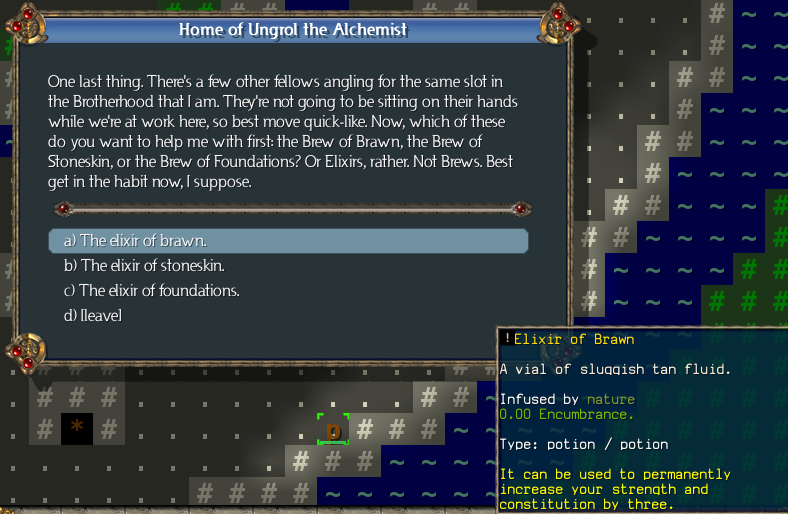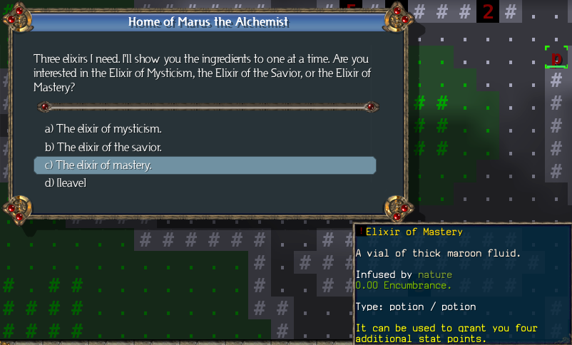 Once again, we're going to skip all the stores, since we don't want to fill them with low-level junk. We just go straight to the brown * and accept the second alchemist quest.